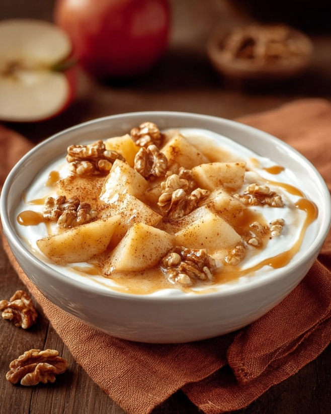 Karamellisierte Apfel Walnuss Joghurt Bowl einfach genießen!