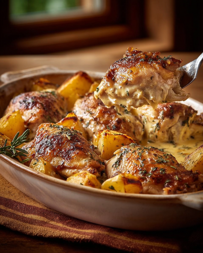 Cremiges Ofenhähnchen mit Rosmarinkartoffeln genießen!