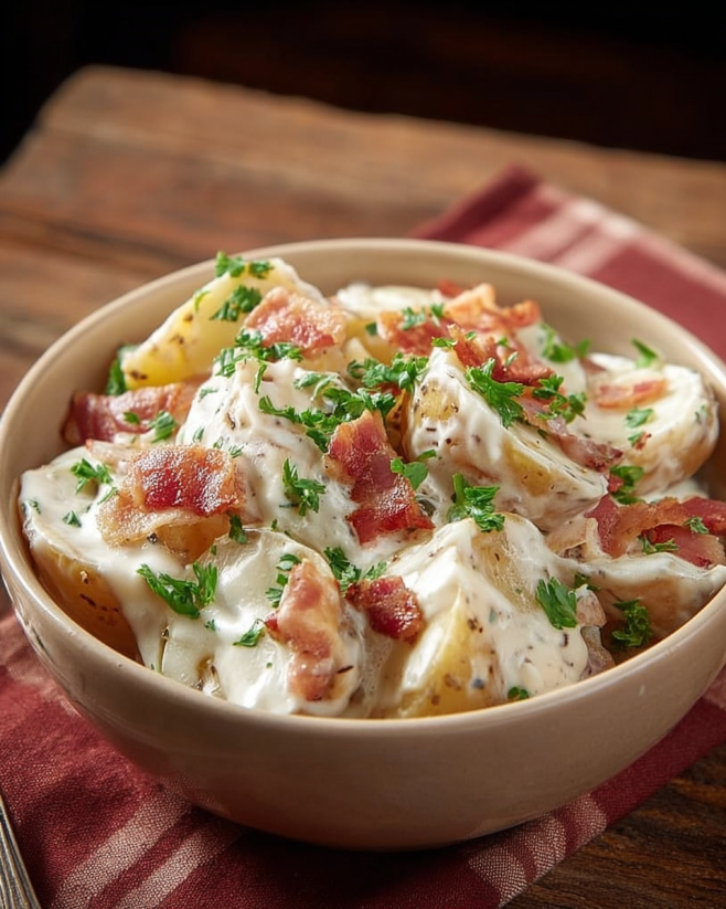 Cremiger Kartoffelsalat mit Ei und Frühlingszwiebeln genießen!