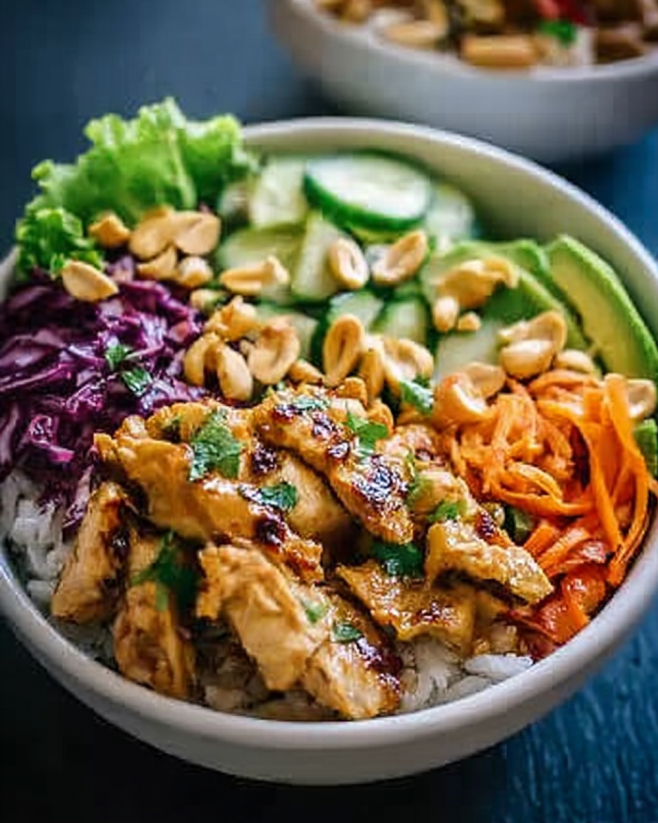 Thai Erdnuss-Hühnchen Buddha Bowl – Ein Genuss für alle!